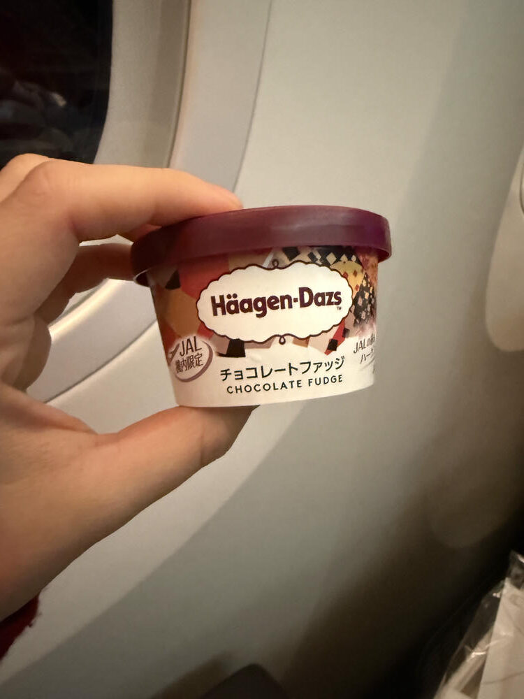 The JAL-exclusive Häagen-Dazs ice cream, with its melted chocolate covered by vanilla ice cream, was the perfect treat.