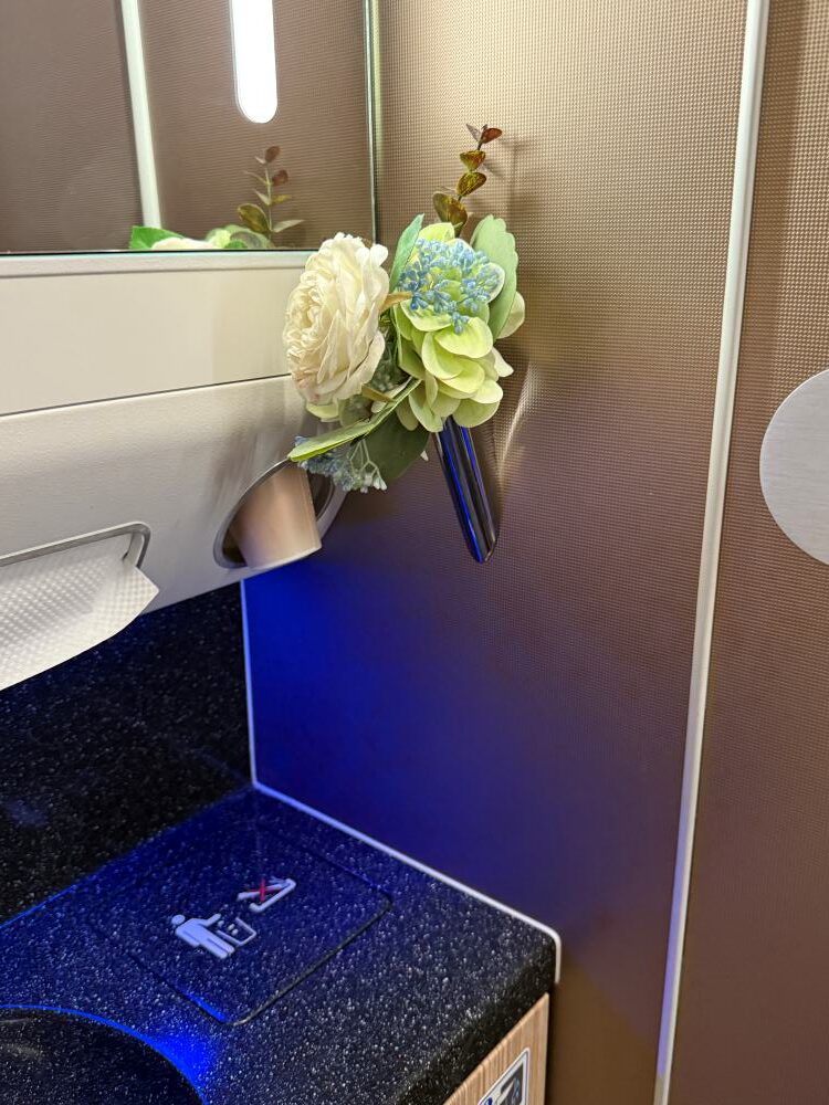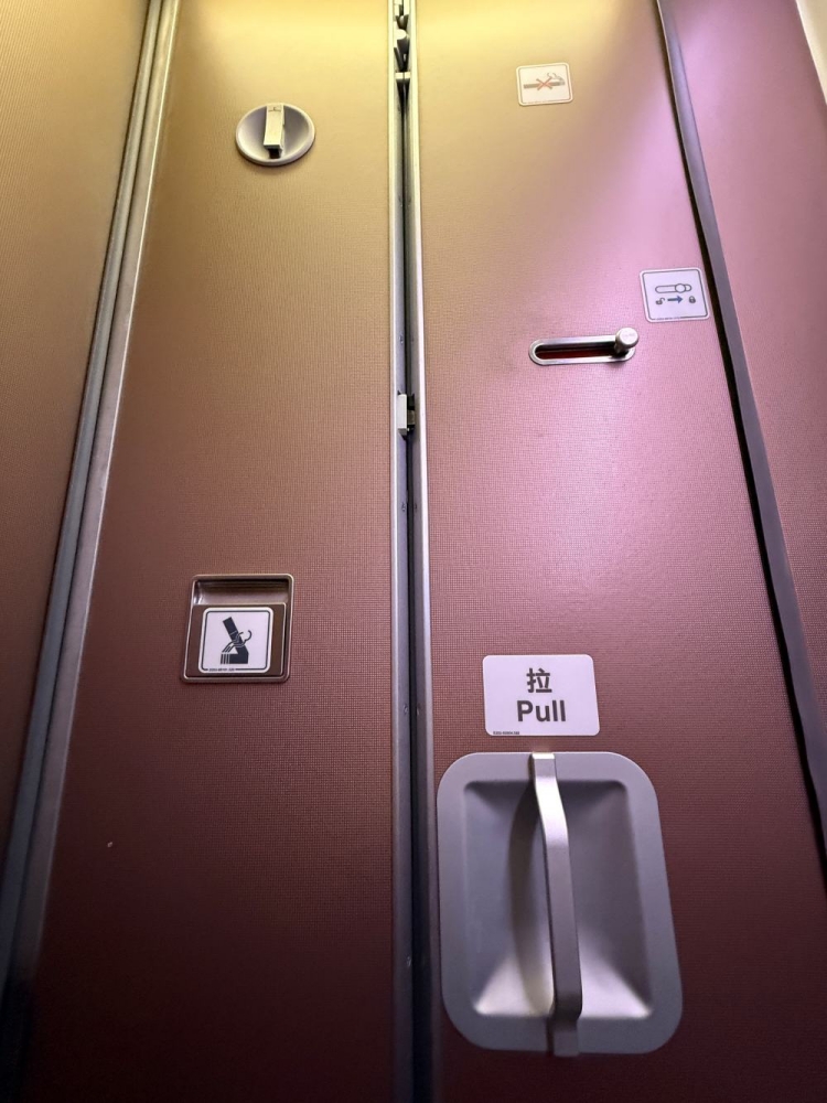 Right before landing, I noticed a clever design: the door had a built-in mirror—very handy.