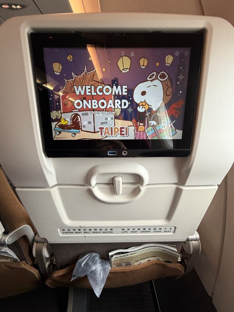 I love the details of Snoopy theme flight! The food is better in their lounge, not inflight.