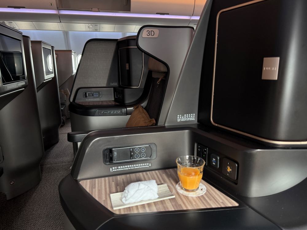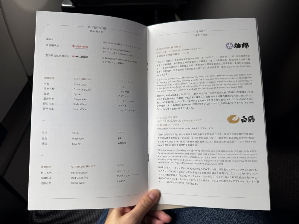 The crew offered welcome juice and a warm towel. A Japanese flight attendant (fluent in Chinese but with a slight accent) introduced the seat features. I quickly realized the side buttons were super sensitive—my seat kept moving unexpectedly!