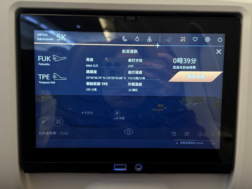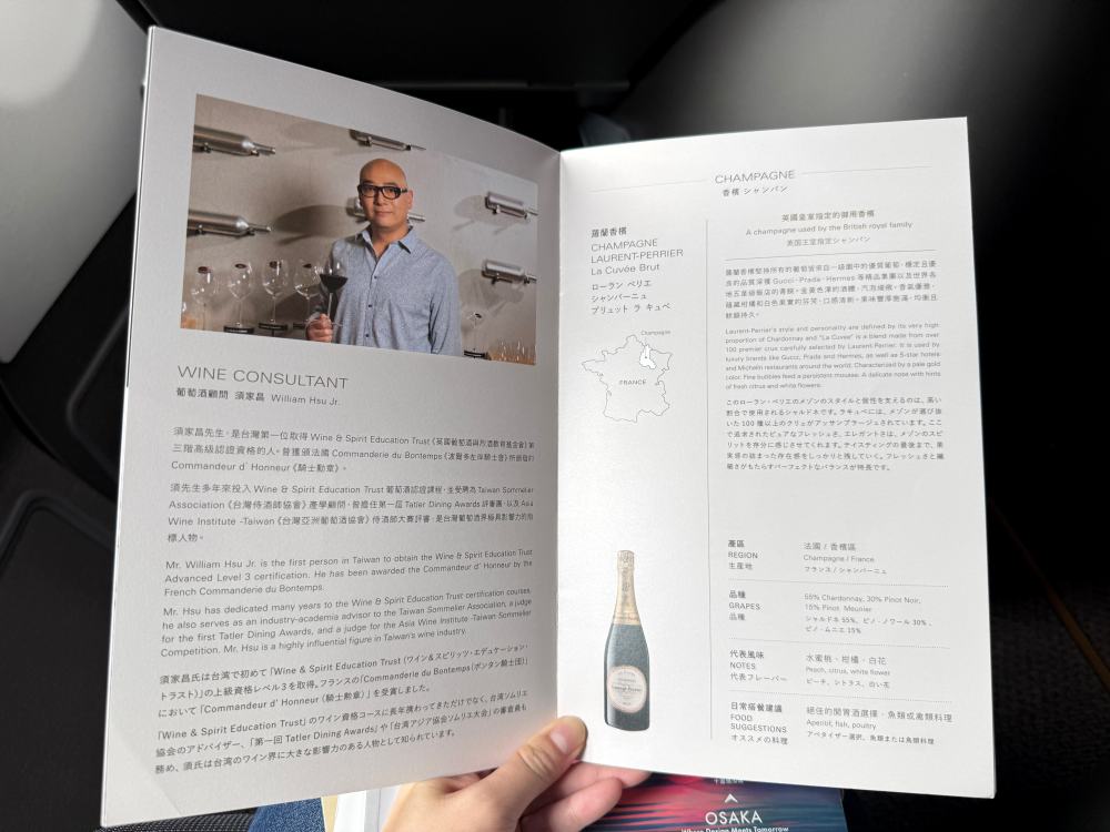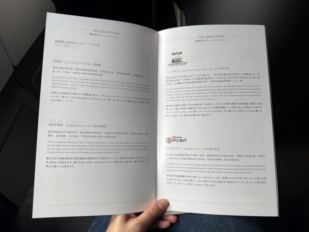 Later, a Taiwanese purser also greeted me and mentioned possible turbulence during the flight, stating that hot drinks might not be served during turbulence.