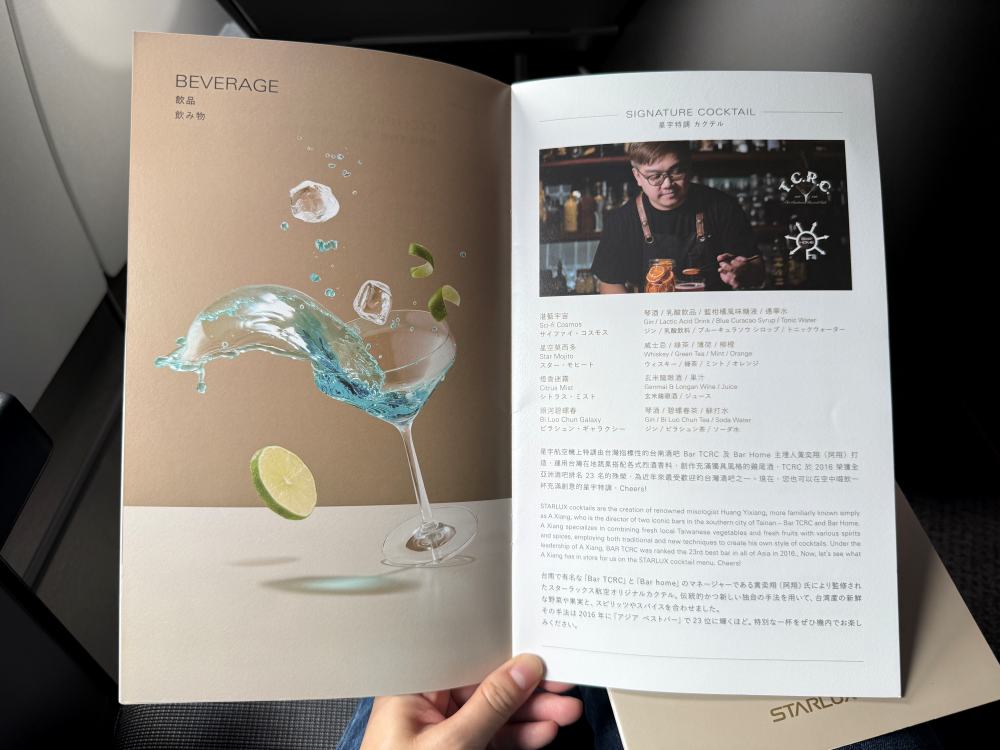 Starlux Airlines Business Class Drink Menu
