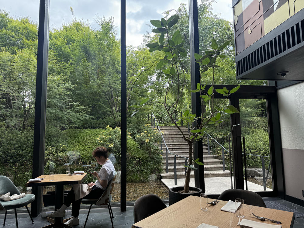 Hidden inside a courtyard-like area, the restaurant opens into a serene view—like suddenly being transported to a quiet mountain retreat.